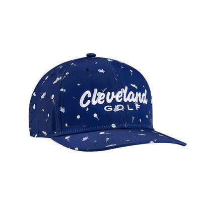 CLEVELAND GOLF PRINT HAT – BLUE Tee it up in style with a print hat that’s sure to catch everyone’s eye Caterpillar snap closure 6-panel structured construction with performance polyester and a moisture-wicking sweatband to keep you cool on the course