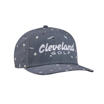 CLEVELAND GOLF PRINT HAT – GREY Tee it up in style with a print hat that’s sure to catch everyone’s eye Caterpillar snap closure 6-panel structured construction with performance polyester and a moisture-wicking sweatband to keep you cool on the course