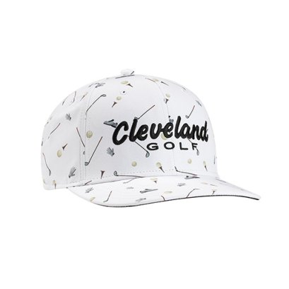 CLEVELAND GOLF PRINT HAT – WHITE Tee it up in style with a print hat that’s sure to catch everyone’s eye Caterpillar snap closure 6-panel structured construction with performance polyester and a moisture-wicking sweatband to keep you cool on the course